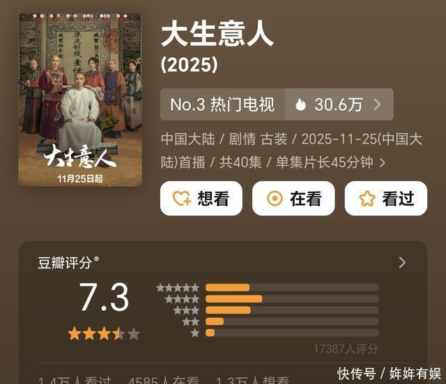 刻下,要说最热的一部电视剧。 一定是《大生意东说念主》!