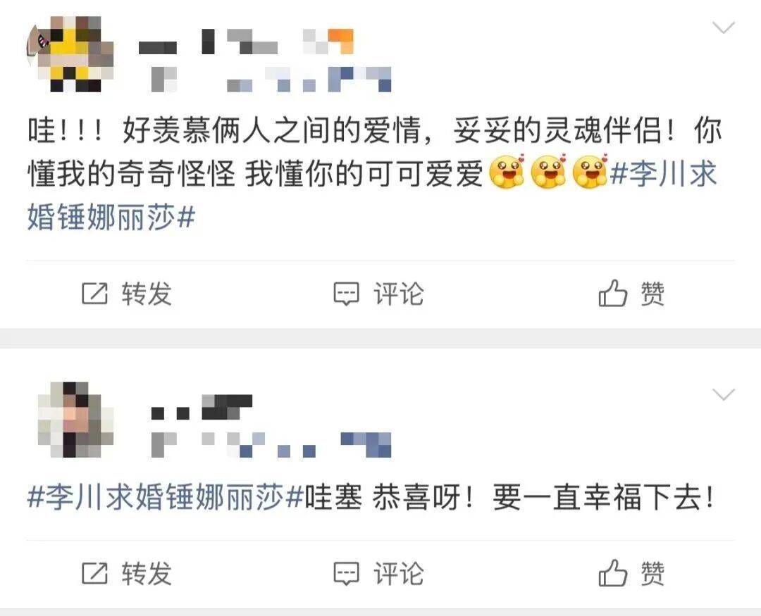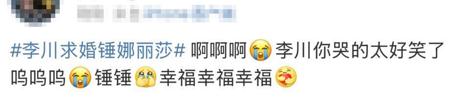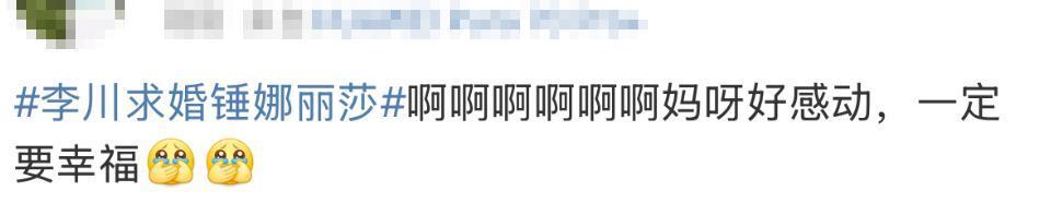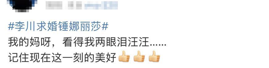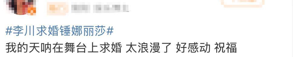 2025年12月31日,在浙江卫视跨年晚会上,男演员李川现场用玫瑰花海求婚锤娜丽莎,求婚告成后李川称为了这一刻仍是准备了很久,锤娜丽莎马上惊喜落泪。