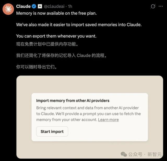 继Claude面向订阅用户开启「60秒一键搬家」后,今天,免用度户也能用了。