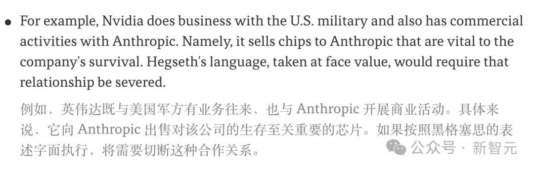 要是严格施行,像英伟达这么既与好意思军作念买卖,又向Anthropic供应芯片的巨头,这种关系就得被枢纽断。