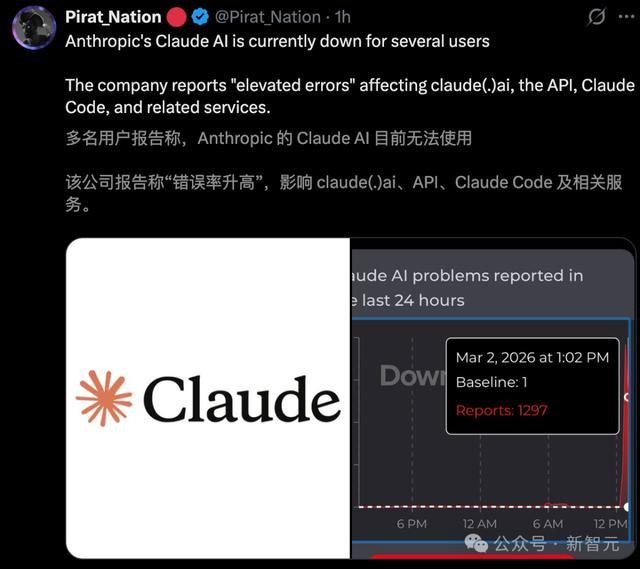 就在刚刚,Claude各人宕机,瞬息引爆全网。