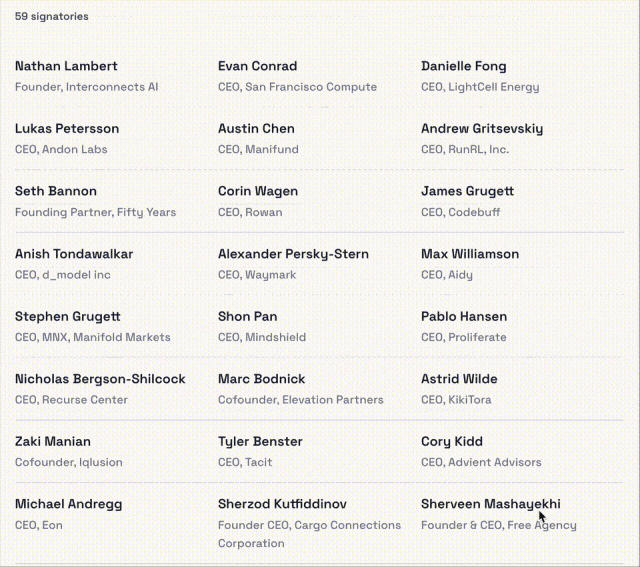 这封信的签署者,来自多家主流科技公司,以及风险投资机构。